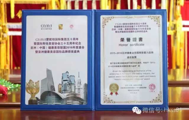 盛世集團(tuán)獲得2015-2016亞洲健康美容國(guó)際影響力品牌獎(jiǎng)