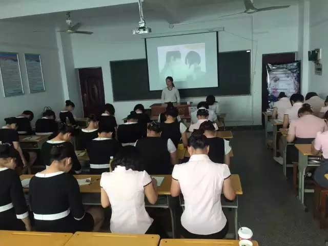 盛世精英正在認真講解頸部項目優(yōu)勢和專業(yè)知識,以及頸部健康保養(yǎng)知識,寶貝們神情專注,聽得都很入迷。